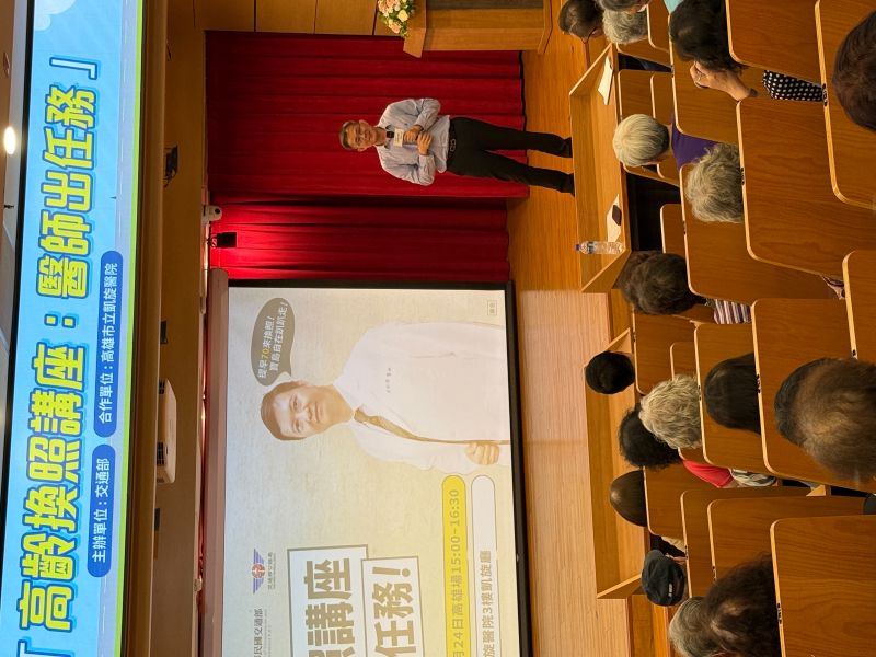 【視傳媒記者吉雄世高雄報導】為讓高齡者更清楚駕駛的健康風險,交通部公路局特別於全國辦理7場「高齡換照講座:醫師出任務」,首場講座於11月24日在高雄市凱旋醫院舉行,現場邀請凱旋醫院黃敏偉副院長從醫學的專業角度深入淺出講解高齡身體機能退化與交通安全的關係,並由高雄市區監理所人員解說高齡換照以分級關懷、協助安全駕駛的核心理念及高齡換照制度相關內容,活動過程穿插有獎徵答,與民眾親切互動、交流問題,民眾更直接瞭解高齡換照的精神與內容,也對身體退化與交通安全的關聯有更深刻體認。