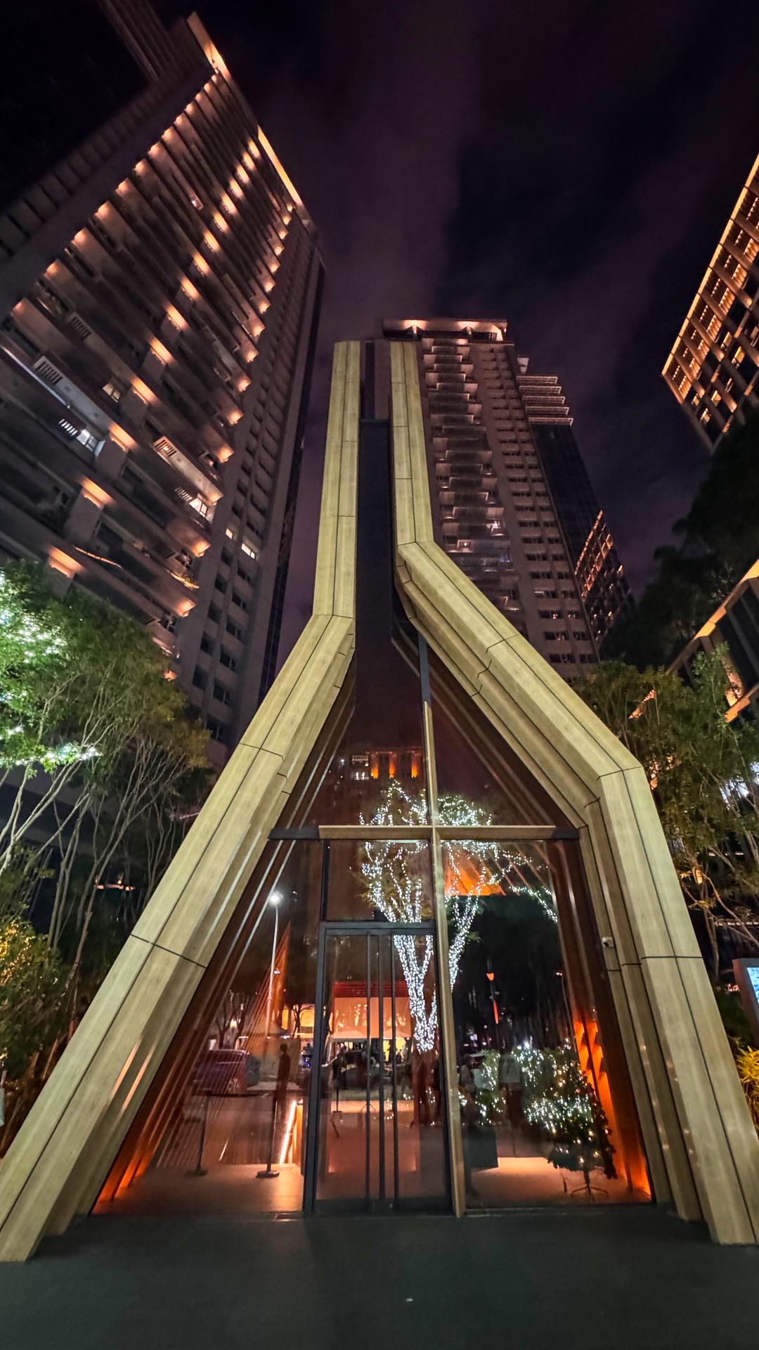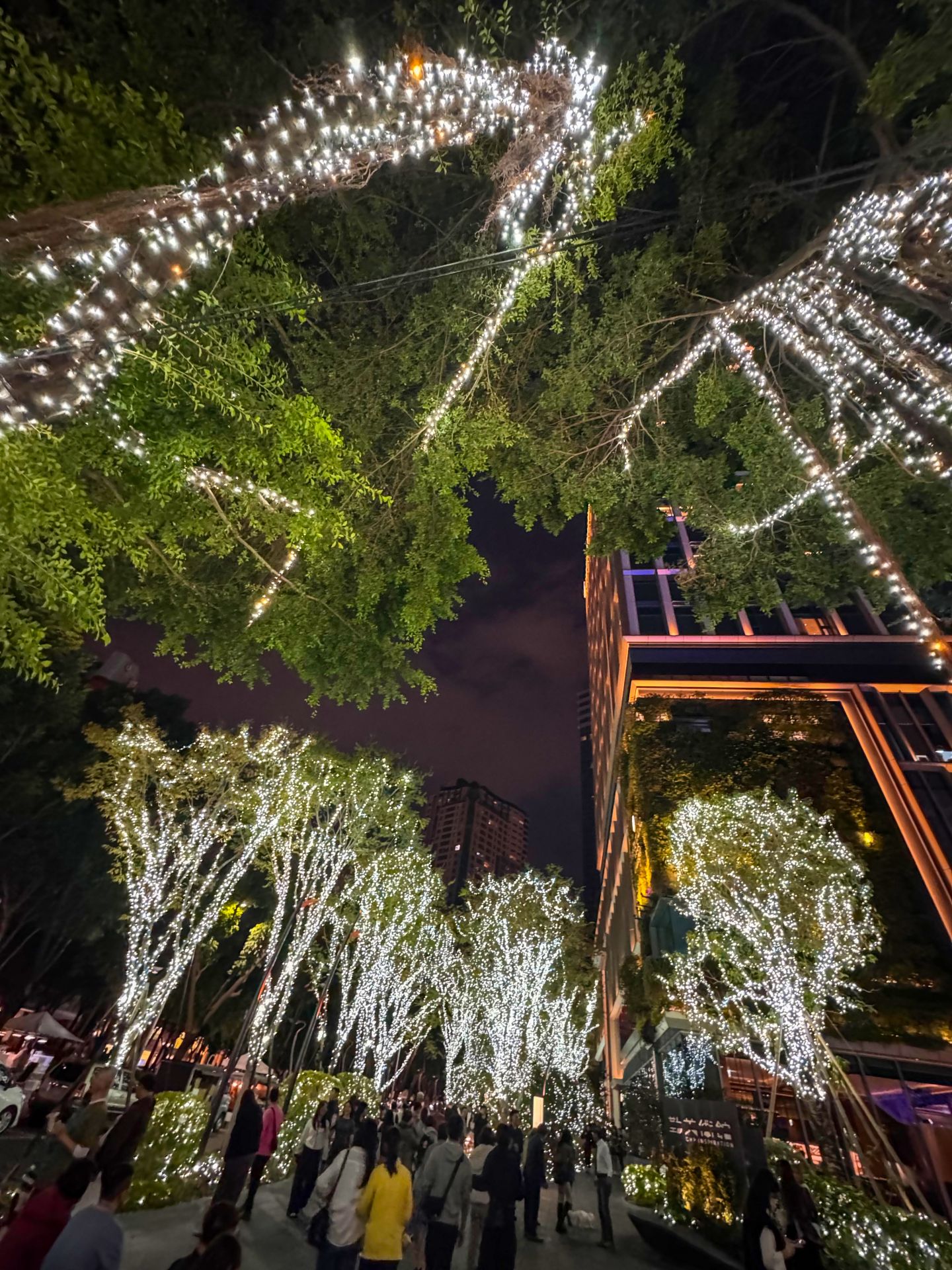 從臺中勤美洲際酒店、教堂廣場,直到勤美術館。250公尺的步道,總共由40萬顆銀白燈泡交織,將綠廊化為一條雪白的童話小徑, 打造出浪漫台中聖誕村。