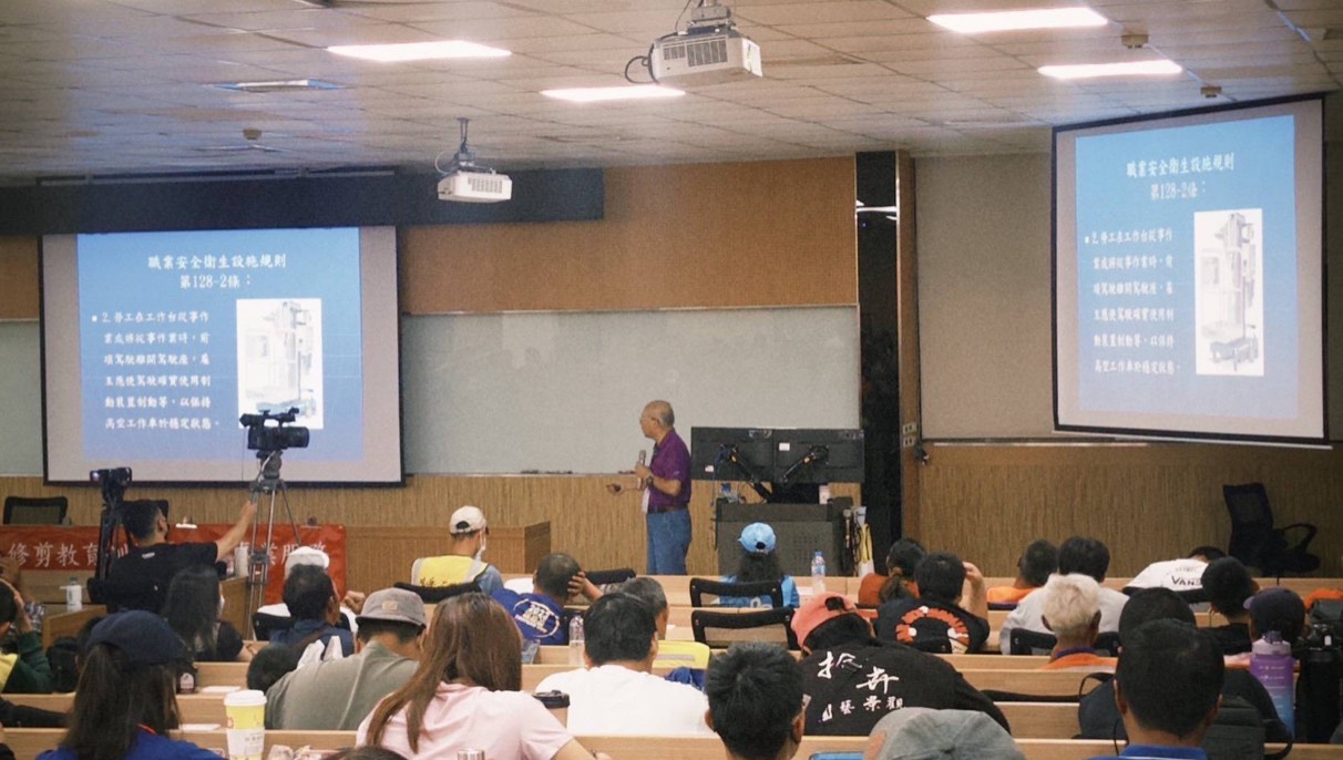 其中,去(114)年度「教育訓練課程設計」涵蓋樹木修剪證照課程及高空作業體驗課程等內容。樹木修剪證照課程採數位化與實體化雙軌並行,實體課程於114年7月24日及7月25日辦理2場次,提供首次報考者與講師面對面交流的學習機會;另針對合格證失效或業務繁忙之從業人員,亦可彈性運用數位課程自行安排進修時間。課程中將由專業講師示範樹木修剪下刀方式,說明疏刪、短截及不良枝判定原則,讓學員了解正確修剪有助於樹木健康生長、降低風災風險、改善通風與採光,並減少病蟲害發生。現場亦安排實作演練,指導學員正確修剪要領,矯正常見錯誤觀念。