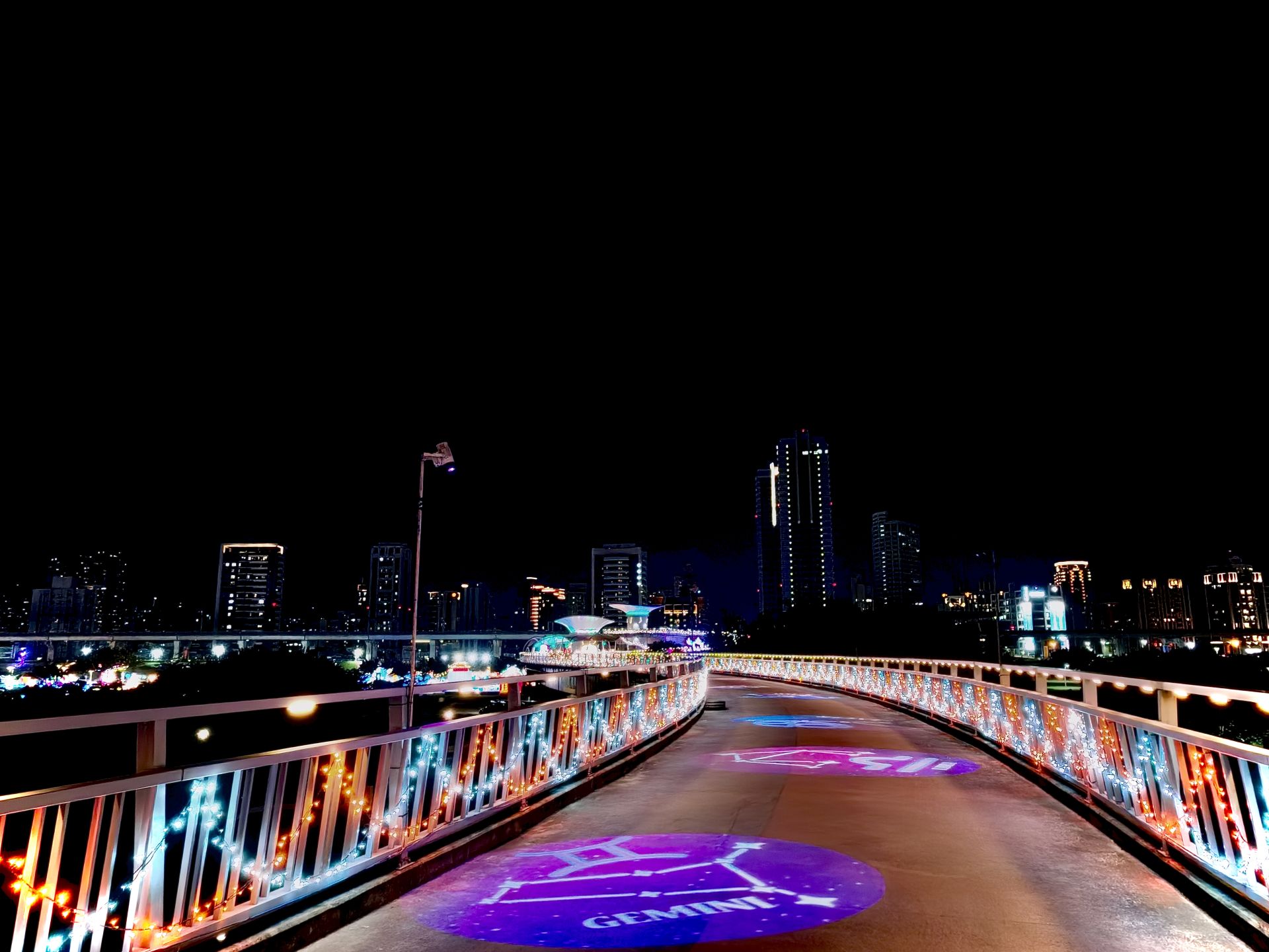 辰光橋位於三重雙捷交匯站,橋體以牛郎織女重逢意象為設計靈感,雙層雙曲線橋台宛如蜿蜒銀河,象徵跨越時空的相遇與相守。每年情人節期間,辰光橋光雕展皆與新北燈會展期相互呼應,已成為新北市夜間最具人氣的浪漫地標之一。