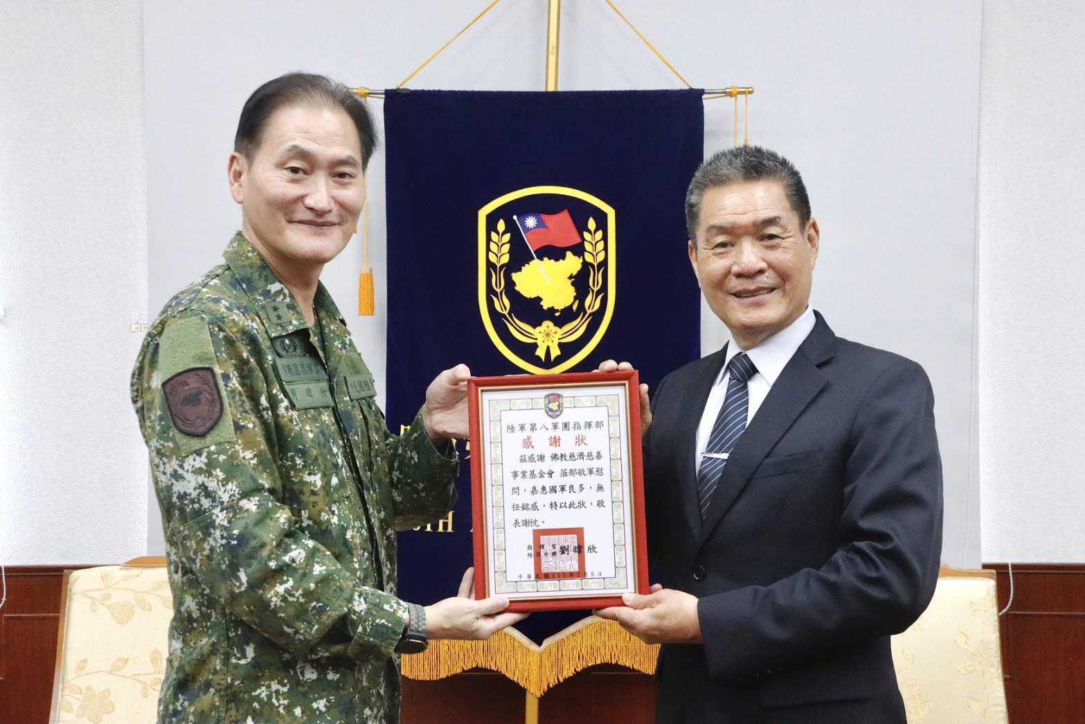 召集人潘機利、副召集人王獻聰、方漢武、方上榮、潘進隆及慈濟高雄區公傳召集人鄭楊慶等人,前往陸軍八軍團拜會,向國軍弟兄表達尊敬與感謝,受到陸軍八軍團中將指揮官劉暐欣與各級相關官員的歡迎。
