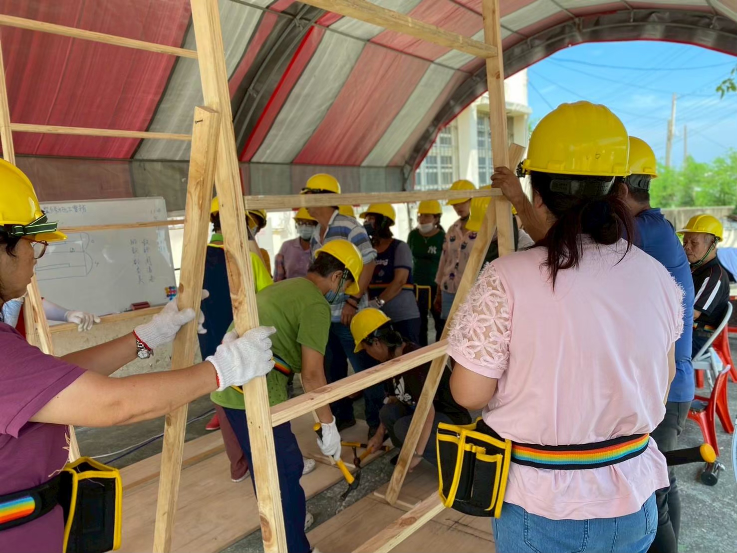 ▲陳迦秦(右)在居家清潔工作室空閒之餘,也受聘至工地擔任營建木工助理,開啟多元斜槓人生。(圖/雲嘉南分署提供)