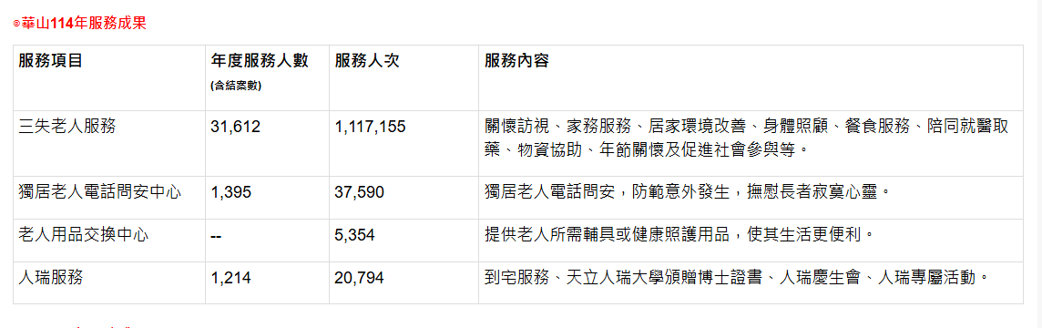 華山基金會於大高雄地區服務近3,500位三失(失依、失能、失智)長輩,提供關懷訪視、陪同就醫、物資協助、年節關懷等免費到宅服務,並不定期舉辦社區服務活動,促進長輩社會參與。現正進行「愛老人 端午動起來」公益活動,籌募弱勢長輩常年服務經費,認助一位長輩每月1,250元、一年15,000元,期待您的愛心支持,讓孤老更有福。愛心專線:(07)536-8281陳站長,劃撥帳號:42182258,戶名:華山基金會(通訊欄請備註:115端午苓雅1站),歡迎來電索取信用卡授權書或諮詢其他捐款方式。(勸募字號:115愛老人衛部救字第1141364538號,勸募期間:115年1月1日至115年12月31日)【本會按月將專案款項匯入勸募指定帳號】