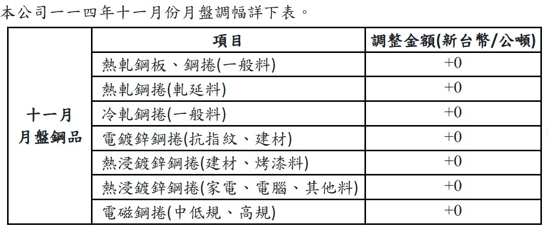 【視傳媒記者吉雄世高雄報導】近期國內外鋼需復甦緩慢,終端庫存回補力道溫和,短期鋼市呈盤整態勢。考量下游產業仍面臨競爭挑戰,為順應國際行情並兼顧客戶接單競爭力,中鋼公司十一月份月盤產品以平盤開出,並持續推動多元方案,確保接單量能。